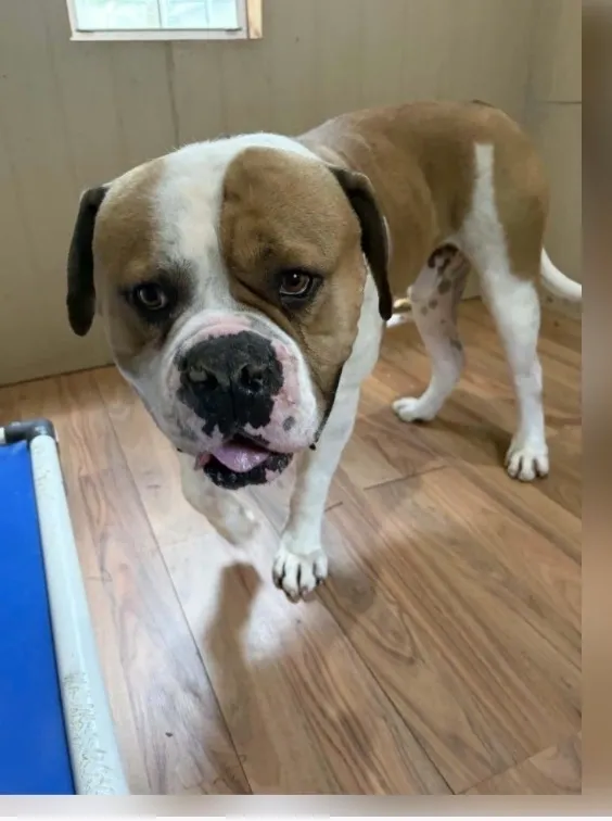 Brutus is an adult male Bulldog. This sweet boy was surrendered simply because he was too big. He is gentle and playful (loves his toys and chasing a ball)